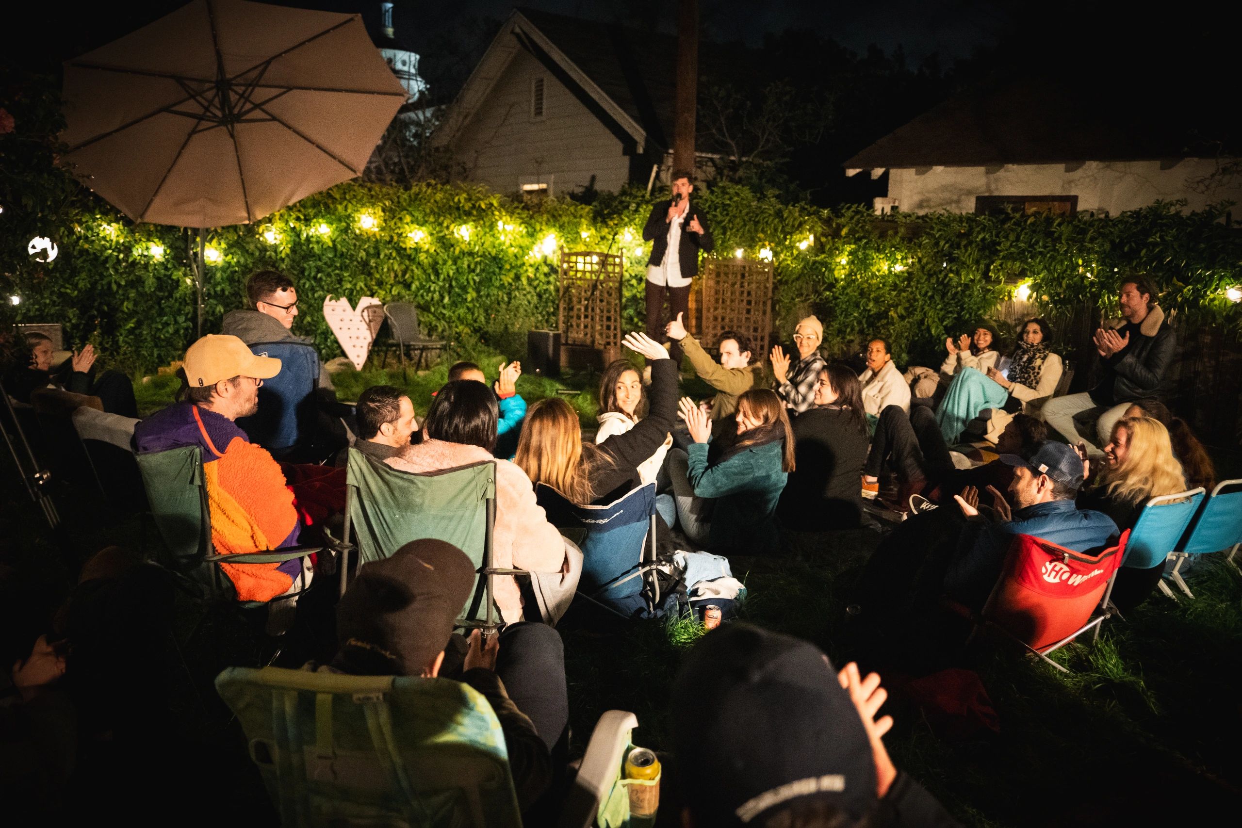 Shows are monthly, and dates are sent to our mailing list and published on this website. The Backyard Comedy Series is currently in Larchmont Village, Los Angeles. If you are interested in starting your own show, please reach out to us above.